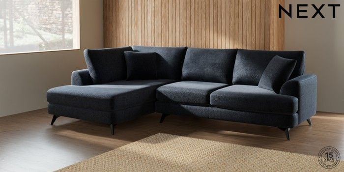 7.2.5 Buy Parker Medium Corner Chaise - Left Hand Boucle Chenille Dark Slate Blue High Metal - Black from the Next UK online shop Click here to use our accessible website