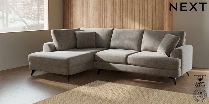 7.2.5 Buy Parker Medium Corner Chaise - Left Hand Chunky Boucle Easy Clean Dove High Metal - Black from the Next UK online shop Click here to use our accessible website