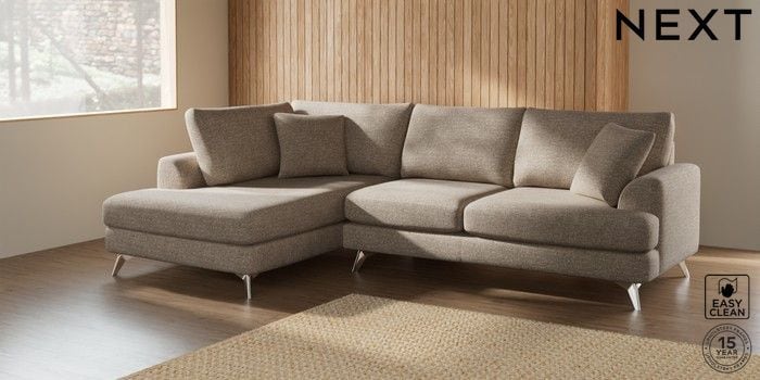 7.2.5 Buy Parker Medium Corner Chaise - Left Hand Chunky Boucle Easy Clean Mid Natural High Metal - Chrome from the Next UK online shop Click here to use our accessible website