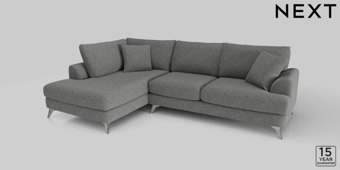 6.12.1 Buy Parker Medium Corner Chaise - Left Hand Chunky Chenille Dark Grey High Metal - Chrome from the Next UK online shop Click here to use our accessible website