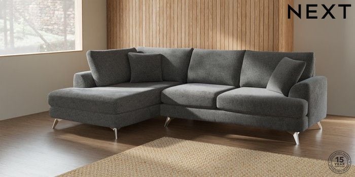 7.2.5 Buy Parker Medium Corner Chaise - Left Hand Chunky Chenille Dark Grey High Metal - Chrome from the Next UK online shop Click here to use our accessible website