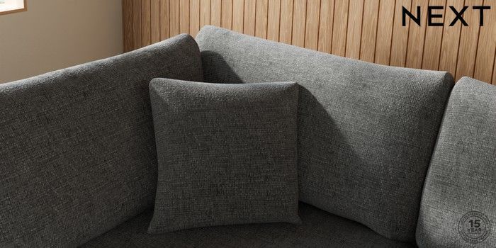 7.2.10 Buy Parker Medium Corner Chaise - Left Hand Chunky Chenille Dark Grey Low Retro Tapered - Dark from the Next UK online shop Click here to use our accessible website