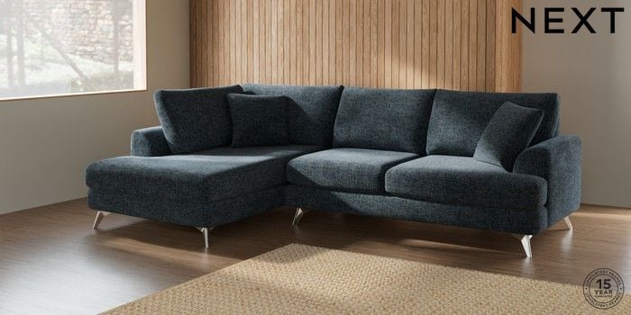7.2.5 Buy Parker Medium Corner Chaise - Left Hand Chunky Chenille Dark Navy Blue High Metal - Chrome from the Next UK online shop Click here to use our accessible website