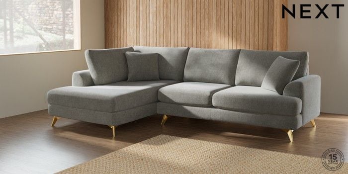 7.2.5 Buy Parker Medium Corner Chaise - Left Hand Chunky Chenille Light Grey High Metal - Brass from the Next UK online shop Click here to use our accessible website