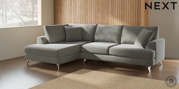 7.2.5 Buy Parker Medium Corner Chaise - Left Hand Chunky Chenille Light Grey High Metal - Chrome from the Next UK online shop Click here to use our accessible website