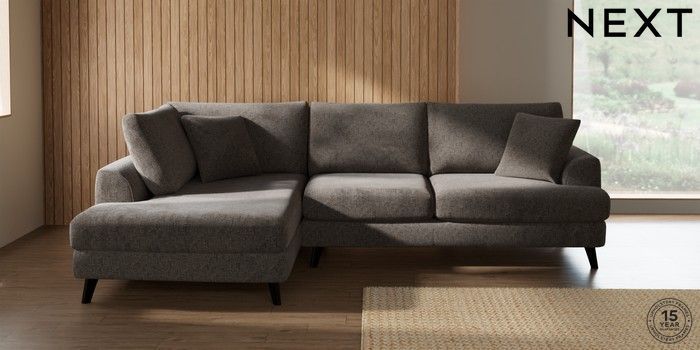 7.2.10 Buy Parker Medium Corner Chaise - Left Hand Chunky Chenille Mink Brown Low Retro Tapered - Dark from the Next UK online shop Click here to use our accessible website