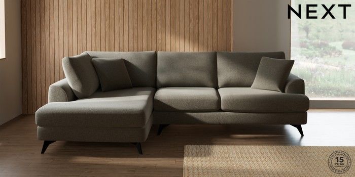 7.2.10 Buy Parker Medium Corner Chaise - Left Hand Chunky Marl Light Olive Green High Metal - Black from the Next UK online shop Click here to use our accessible website