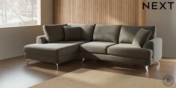 7.2.5 Buy Parker Medium Corner Chaise - Left Hand Chunky Marl Light Olive Green High Metal - Chrome from the Next UK online shop Click here to use our accessible website