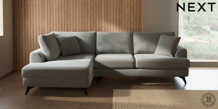 7.2.10 Buy Parker Medium Corner Chaise - Left Hand Chunky Texture Dove High Metal - Black from the Next UK online shop Click here to use our accessible website