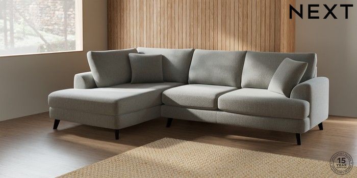 7.2.5 Buy Parker Medium Corner Chaise - Left Hand Chunky Texture Dove Low Retro Tapered - Dark from the Next UK online shop Click here to use our accessible website