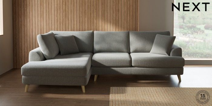 7.2.10 Buy Parker Medium Corner Chaise - Left Hand Chunky Texture Dove Low Retro Tapered - Light from the Next UK online shop Click here to use our accessible website