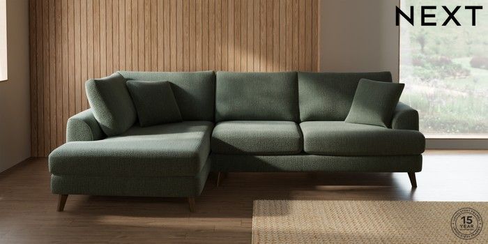 7.2.10 Buy Parker Medium Corner Chaise - Left Hand Chunky Texture Mid Forest Green Low Retro Tapered - Mid from the Next UK online shop Click here to use our accessible website