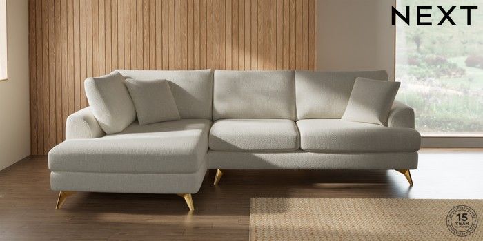 7.2.10 Buy Parker Medium Corner Chaise - Left Hand Chunky Texture Oyster High Metal - Brass from the Next UK online shop Click here to use our accessible website