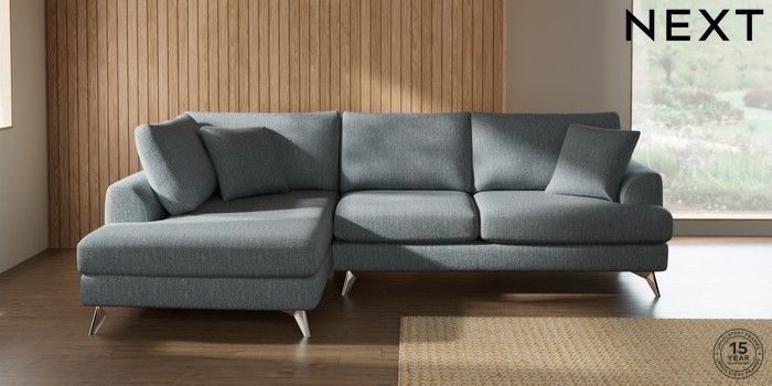 7.2.10 Buy Parker Medium Corner Chaise - Left Hand Chunky Weave Mid Blue High Metal - Chrome from the Next UK online shop Click here to use our accessible website