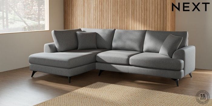 7.2.5 Buy Parker Medium Corner Chaise - Left Hand Chunky Weave Mid Grey High Metal - Black from the Next UK online shop Click here to use our accessible website