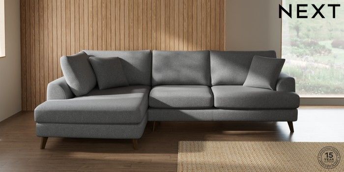 7.2.10 Buy Parker Medium Corner Chaise - Left Hand Chunky Weave Mid Grey Low Retro Tapered - Mid from the Next UK online shop Click here to use our accessible website