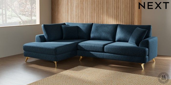 7.2.5 Buy Parker Medium Corner Chaise - Left Hand Cotswold Chenille Dark Blue High Metal - Brass from the Next UK online shop Click here to use our accessible website