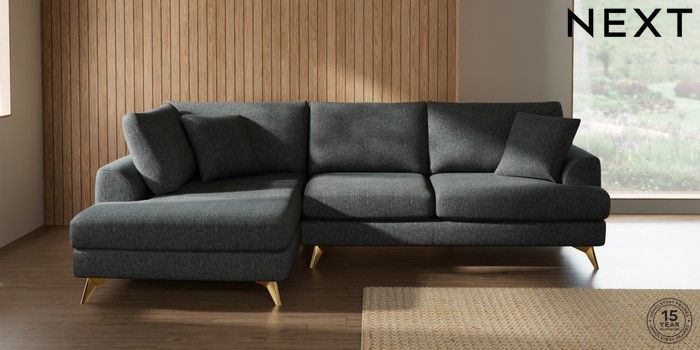 7.2.10 Buy Parker Medium Corner Chaise - Left Hand Cotswold Chenille Dark Grey High Metal - Brass from the Next UK online shop Click here to use our accessible website