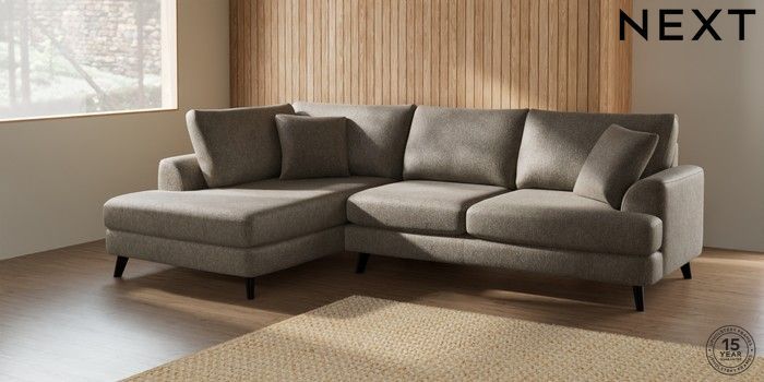 7.0.3 Buy Parker Medium Corner Chaise - Left Hand Cotswold Chenille Mid Mink Brown Low Retro Tapered - Dark from the Next UK online shop Click here to use our accessible website
