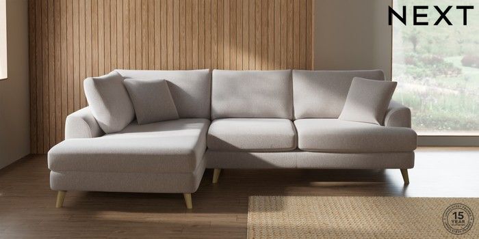 7.2.10 Buy Parker Medium Corner Chaise - Left Hand Cotswold Chenille Oyster Low Retro Tapered - Light from the Next UK online shop Click here to use our accessible website