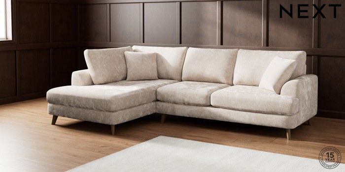 7.2.5 Buy Parker Medium Corner Chaise - Left Hand Distressed Velour Mid Natural Low Retro Tapered - Mid from the Next UK online shop Click here to use our accessible website