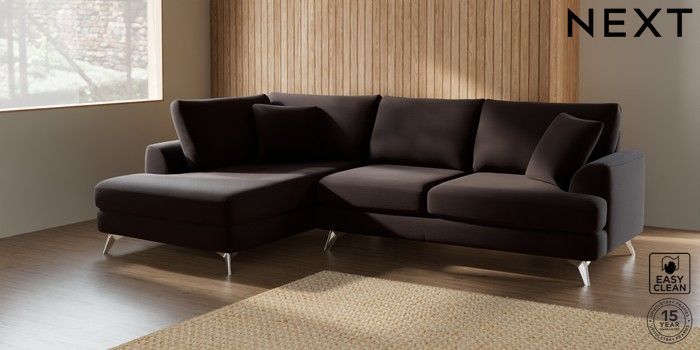 7.2.5 Buy Parker Medium Corner Chaise - Left Hand Fine Chenille Easy Clean Chocolate Brown High Metal - Chrome from the Next UK online shop Click here to use our accessible website