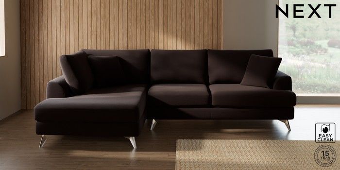7.2.10 Buy Parker Medium Corner Chaise - Left Hand Fine Chenille Easy Clean Chocolate Brown High Metal - Chrome from the Next UK online shop Click here to use our accessible website