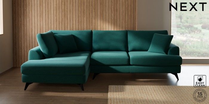 7.2.10 Buy Parker Medium Corner Chaise - Left Hand Fine Chenille Easy Clean Dark Juniper Green High Metal - Black from the Next UK online shop Click here to use our accessible website