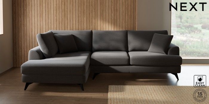 7.2.10 Buy Parker Medium Corner Chaise - Left Hand Fine Chenille Easy Clean Dark Smoke Grey High Metal - Black from the Next UK online shop Click here to use our accessible website
