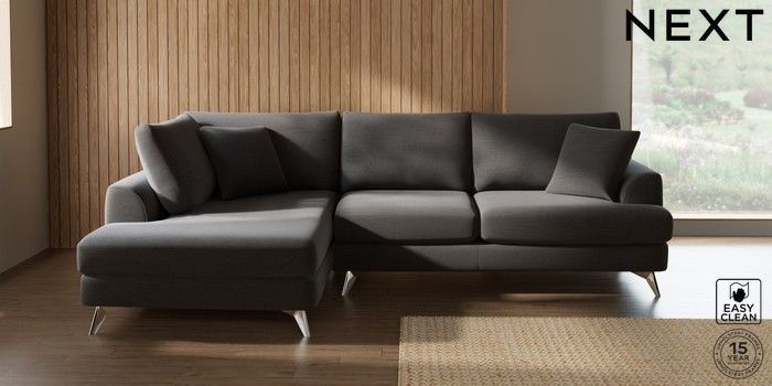 7.2.10 Buy Parker Medium Corner Chaise - Left Hand Fine Chenille Easy Clean Dark Smoke Grey High Metal - Chrome from the Next UK online shop Click here to use our accessible website
