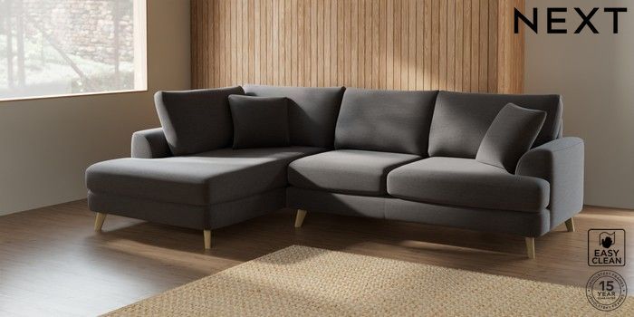 7.2.5 Buy Parker Medium Corner Chaise - Left Hand Fine Chenille Easy Clean Dark Smoke Grey Low Retro Tapered - Light from the Next UK online shop Click here to use our accessible website