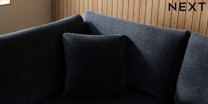 7.2.6 Buy Parker Medium Corner Chaise - Left Hand Boucle Chenille Dark Slate Blue Low Retro Tapered - Light from the Next UK online shop Click here to use our accessible website