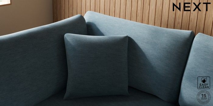 7.2.10 Buy Parker Medium Corner Chaise - Left Hand Fine Chenille Easy Clean Mid Blue Low Retro Tapered - Dark from the Next UK online shop Click here to use our accessible website