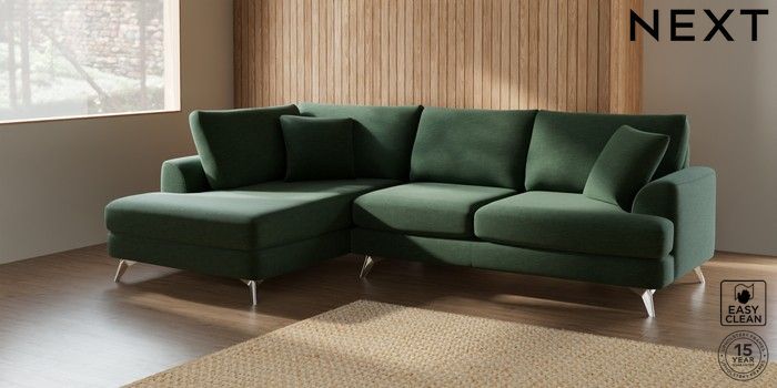 7.2.5 Buy Parker Medium Corner Chaise - Left Hand Fine Chenille Easy Clean Mid Khaki Green High Metal - Chrome from the Next UK online shop Click here to use our accessible website