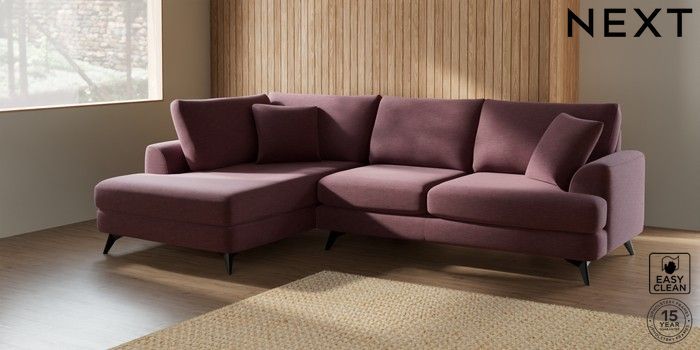 7.2.5 Buy Parker Medium Corner Chaise - Left Hand Fine Chenille Easy Clean Mid Mulberry Purple High Metal - Black from the Next UK online shop Click here to use our accessible website