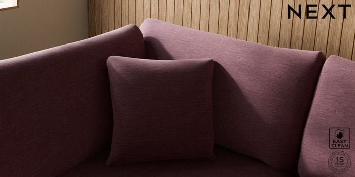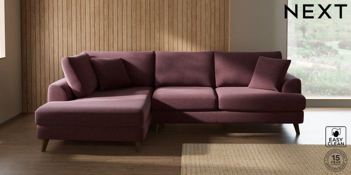 7.3.1 Buy Parker Medium Corner Chaise - Left Hand Fine Chenille Easy Clean Mid Mulberry Purple Low Retro Tapered - Mid from the Next UK online shop Click here to use our accessible website