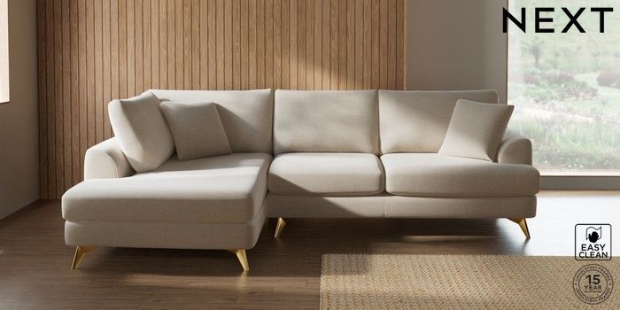 7.2.10 Buy Parker Medium Corner Chaise - Left Hand Fine Chenille Easy Clean Oyster High Metal - Brass from the Next UK online shop Click here to use our accessible website