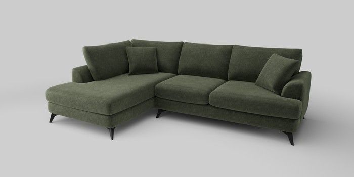 6.12.1 Buy Parker Medium Corner Chaise - Left Hand Luxe Chenille Mid Green High Metal - Black from the Next UK online shop Click here to use our accessible website