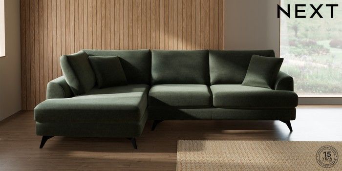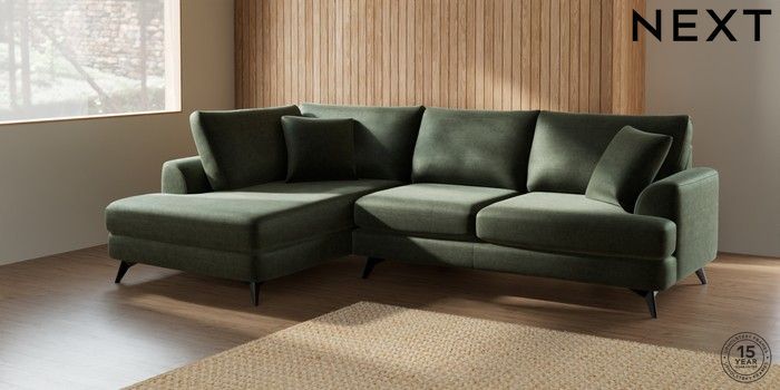 7.0.3 Buy Parker Medium Corner Chaise - Left Hand Luxe Chenille Mid Green High Metal - Black from the Next UK online shop Click here to use our accessible website