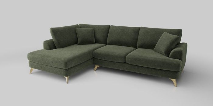 6.12.1 Buy Parker Medium Corner Chaise - Left Hand Luxe Chenille Mid Green High Metal - Brass from the Next UK online shop Click here to use our accessible website