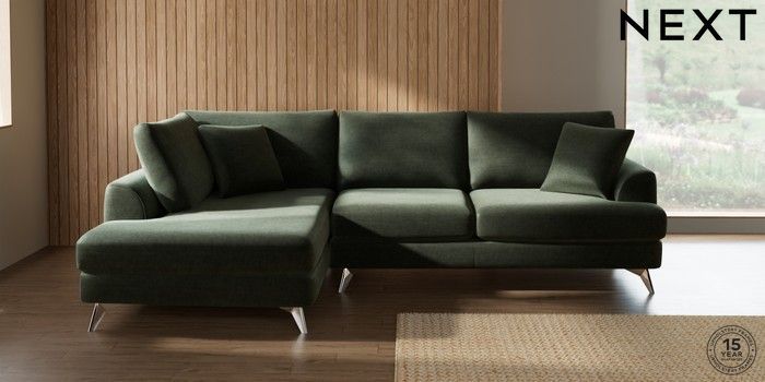 7.0.3 Buy Parker Medium Corner Chaise - Left Hand Luxe Chenille Mid Green High Metal - Chrome from the Next UK online shop Click here to use our accessible website