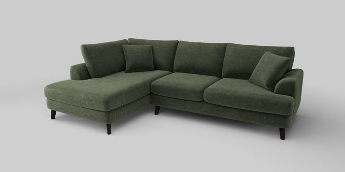 6.12.1 Buy Parker Medium Corner Chaise - Left Hand Luxe Chenille Mid Green Low Retro Tapered - Dark from the Next UK online shop Click here to use our accessible website