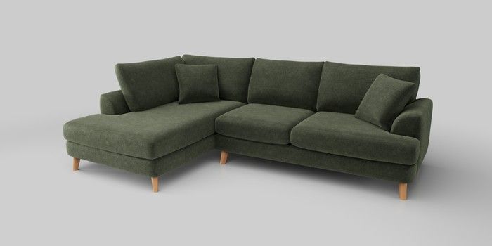 6.12.1 Buy Parker Medium Corner Chaise - Left Hand Luxe Chenille Mid Green Low Retro Tapered - Light from the Next UK online shop Click here to use our accessible website