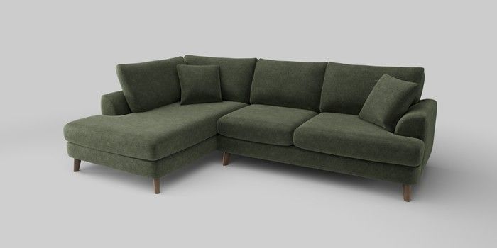 6.12.1 Buy Parker Medium Corner Chaise - Left Hand Luxe Chenille Mid Green Low Retro Tapered - Mid from the Next UK online shop Click here to use our accessible website