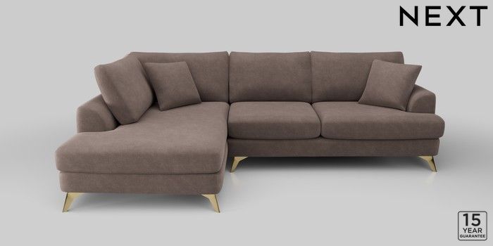 6.12.1 Buy Parker Medium Corner Chaise - Left Hand Luxe Chenille Mink Brown High Metal - Brass from the Next UK online shop Click here to use our accessible website