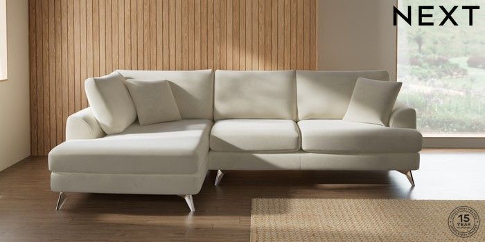 7.0.3 Buy Parker Medium Corner Chaise - Left Hand Luxe Chenille Oyster High Metal - Chrome from the Next UK online shop Click here to use our accessible website