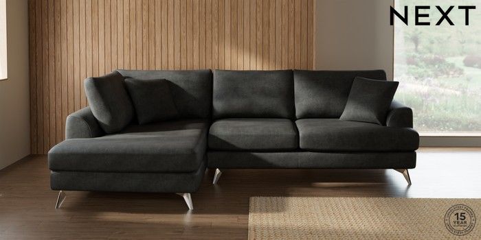 7.3.1 Buy Parker Medium Corner Chaise - Left Hand Monza Faux Leather Easy Clean Dark Grey High Metal - Chrome from the Next UK online shop Click here to use our accessible website