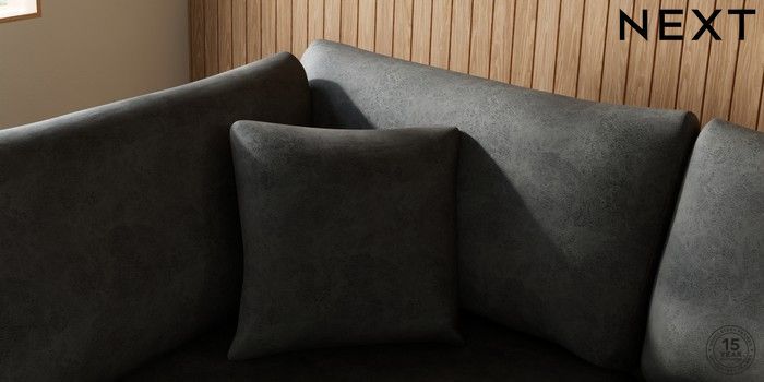 7.3.1 Buy Parker Medium Corner Chaise - Left Hand Monza Faux Leather Easy Clean Dark Grey Low Retro Tapered - Dark from the Next UK online shop Click here to use our accessible website