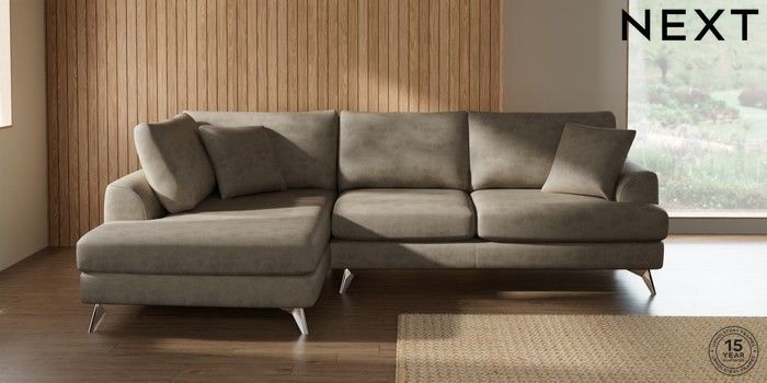 7.3.1 Buy Parker Medium Corner Chaise - Left Hand Monza Faux Leather Easy Clean Mink Brown High Metal - Chrome from the Next UK online shop Click here to use our accessible website