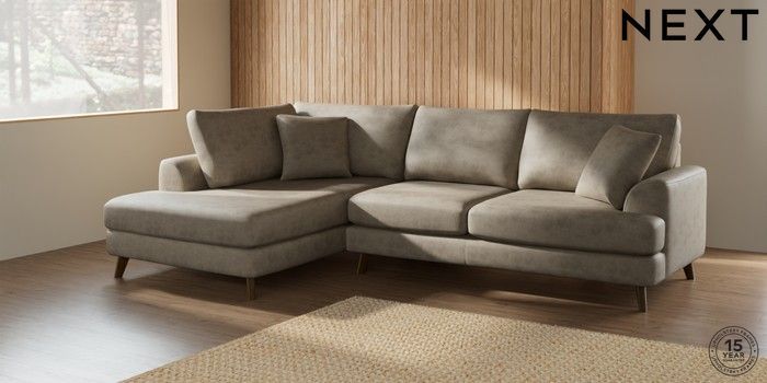 7.2.5 Buy Parker Medium Corner Chaise - Left Hand Monza Faux Leather Easy Clean Mink Brown Low Retro Tapered - Mid from the Next UK online shop Click here to use our accessible website